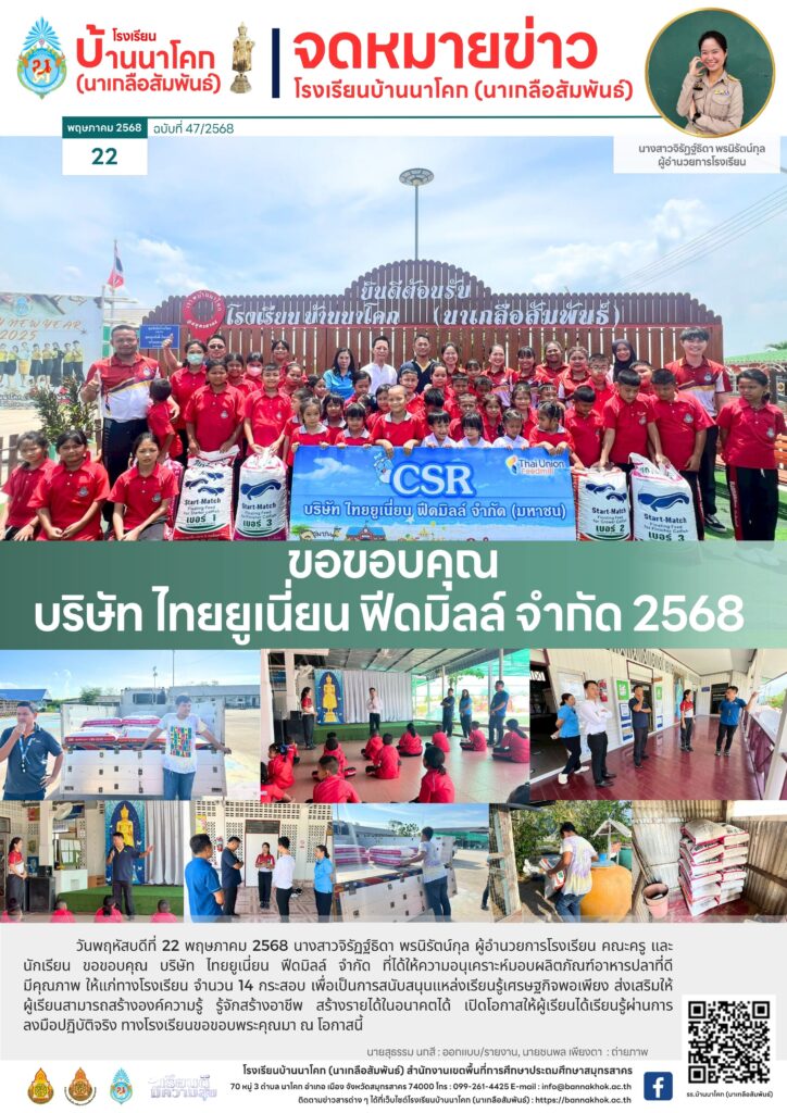ข่าวประชาสัมพันธ์วารสารปีการศึกษา 2568 ขอขอบคุณ บริษัท ไทยยูเนี่ยน ฟีดมิลล์ จำกัด 2568 2025-05-22 ผู้ดูแลระบบ