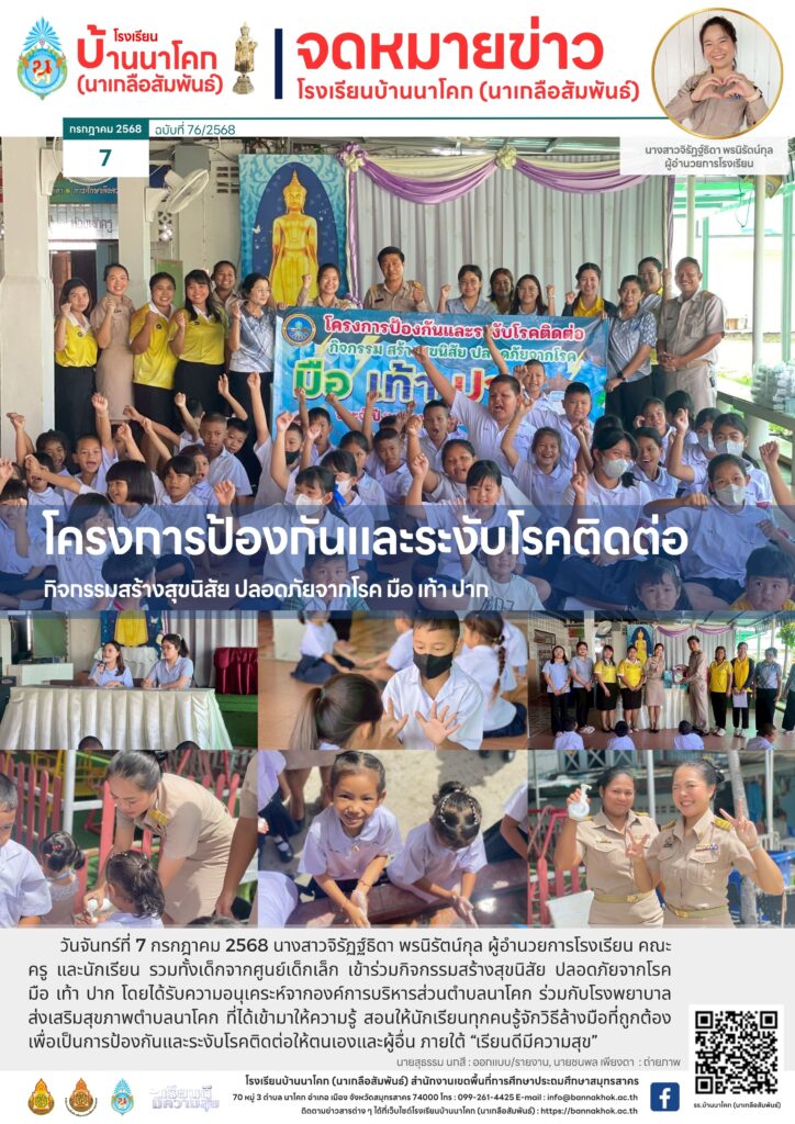 ข่าวประชาสัมพันธ์วารสารปีการศึกษา 2568 โครงการป้องกันและระงับโรคติดต่อ กิจกรรมสร้างสุขนิสัย ปลอดภัยจากโรค มือ เท้า ปาก 2025-07-07 ผู้ดูแลระบบ