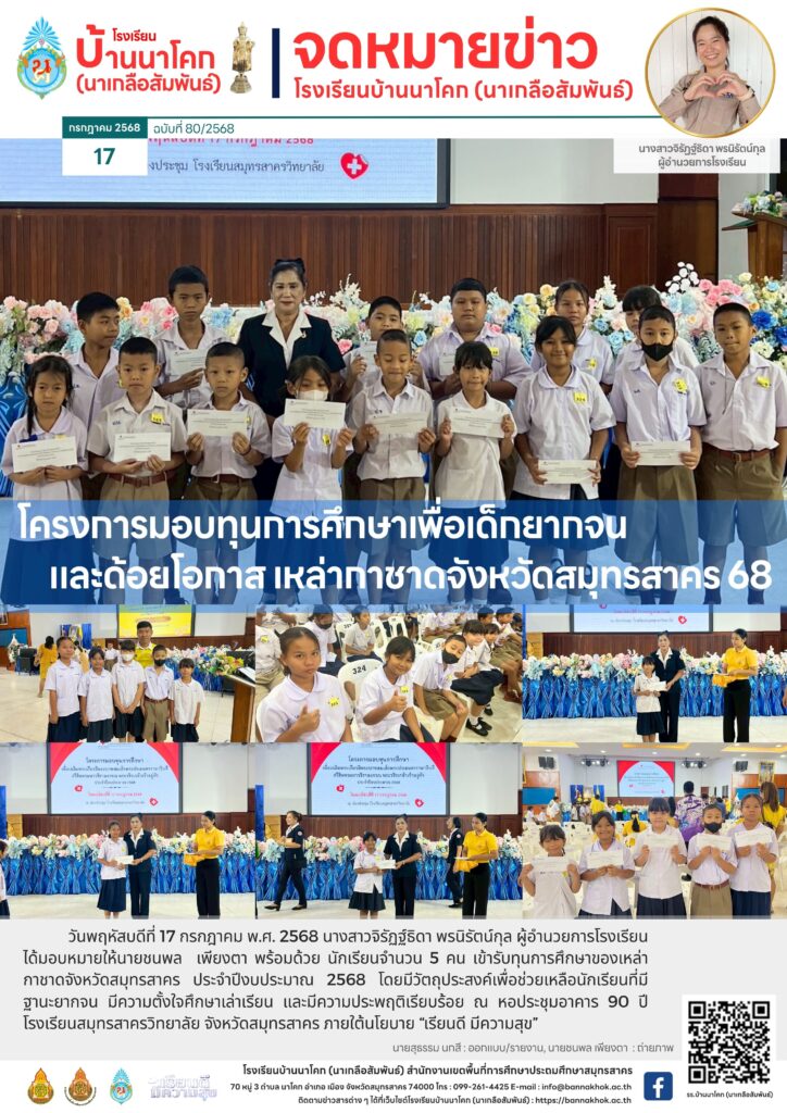 ข่าวประชาสัมพันธ์วารสารปีการศึกษา 2568 โครงการมอบทุนการศึกษาเพื่อเด็กยากจน และด้อยโอกาส เหล่ากาชาดจังหวัดสมุทรสาคร 68 2025-07-17 ผู้ดูแลระบบ