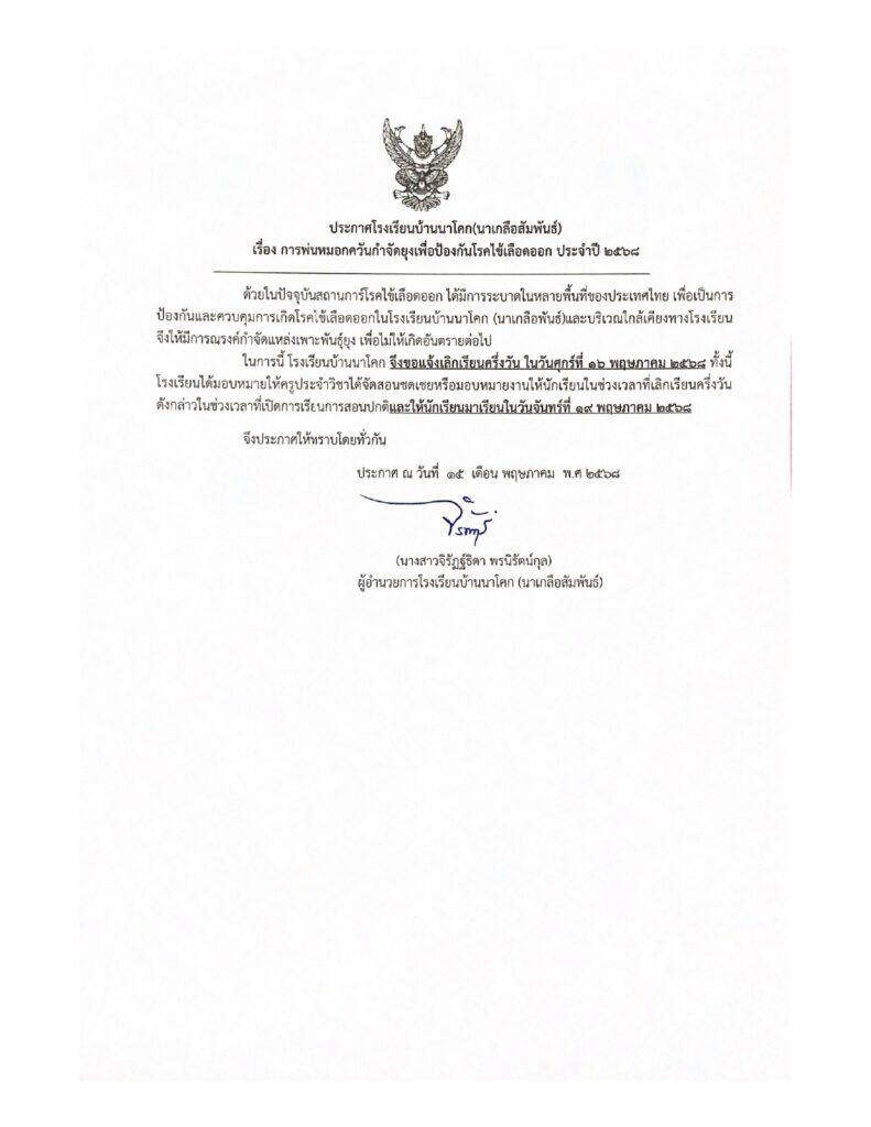 ประกาศโรงเรียน ประกาศโรงเรียน เรื่อง การพ่นหมอกควันกำจัดยุงเพื่อป้องกันโรคไข้เลือดออก ประจำปี 2568 วันศุกร์ที่ 16 พฤษภาคม พ.ศ. 2568 2025-05-15 ผู้ดูแลระบบ